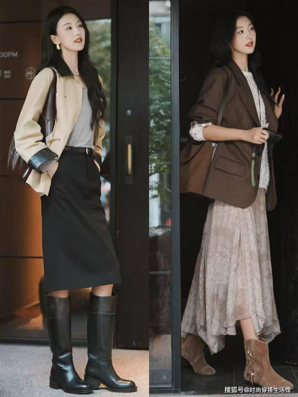 其次喜欢穿裙子的女性基本都是在三十岁以上的年纪,这时候的我们都还在职场打拼,那么我们选择的穿衣打扮自然要优雅得体一些,自然不能少了裙子和靴子,毕竟裙子能够遮挡住下半身缺点,靴子能够全身包裹住我们的足部,不仅时尚保暖同时还优雅高级,简直太百搭了。