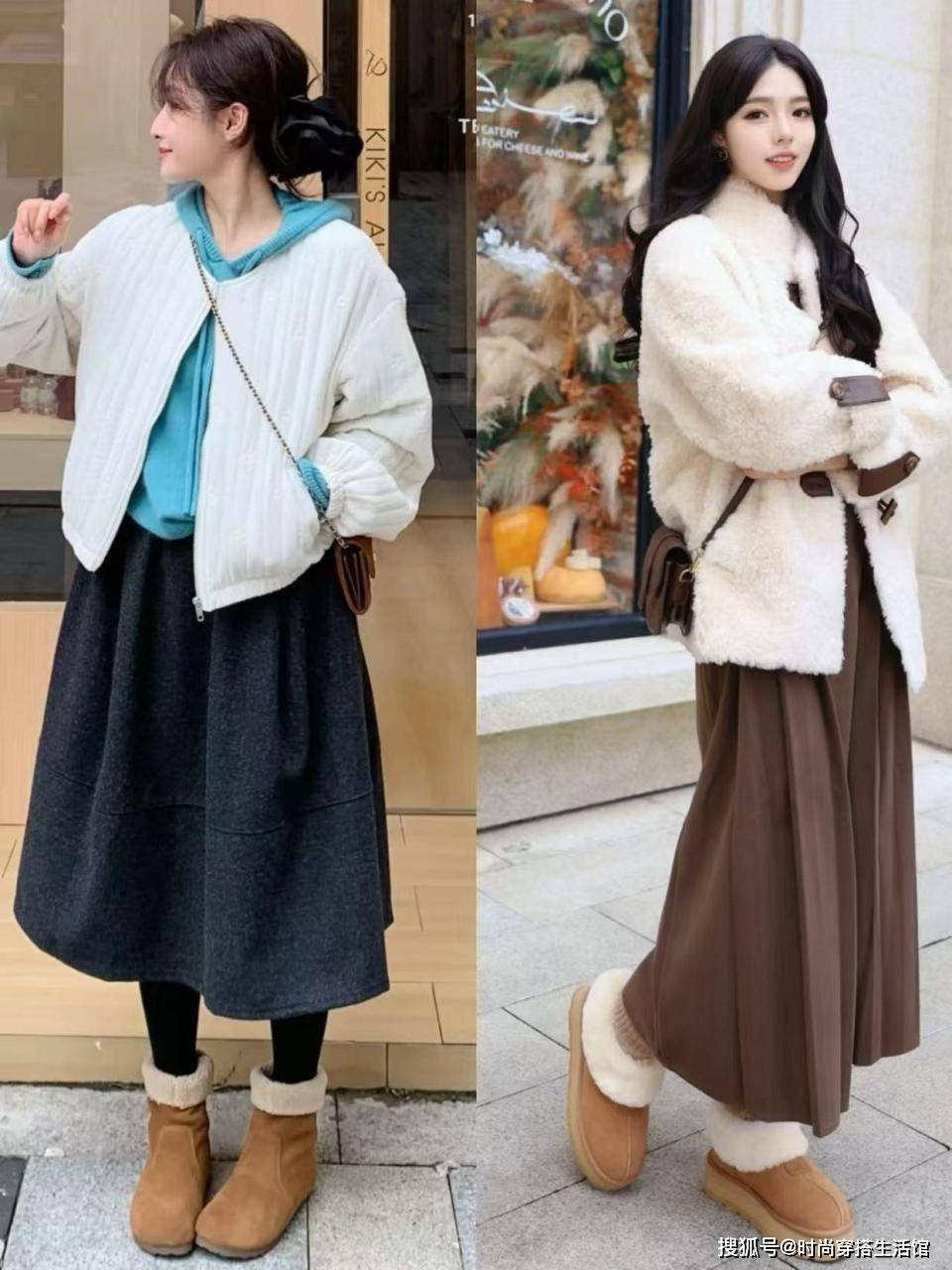 最后寒冷的冬天我们还不能少了雪地靴,备受北方城市的小姐姐穿,但是很多人觉得说选择穿雪地靴很容易造成腿粗、腿胖的问题,主要是因为选择的高度不对,那么最好的方式就是建议大家可以选择低筒和中筒的雪地靴,穿在腿上不仅舒适百搭,同时还保暖高级,搭配上半身裙更时髦和高级。