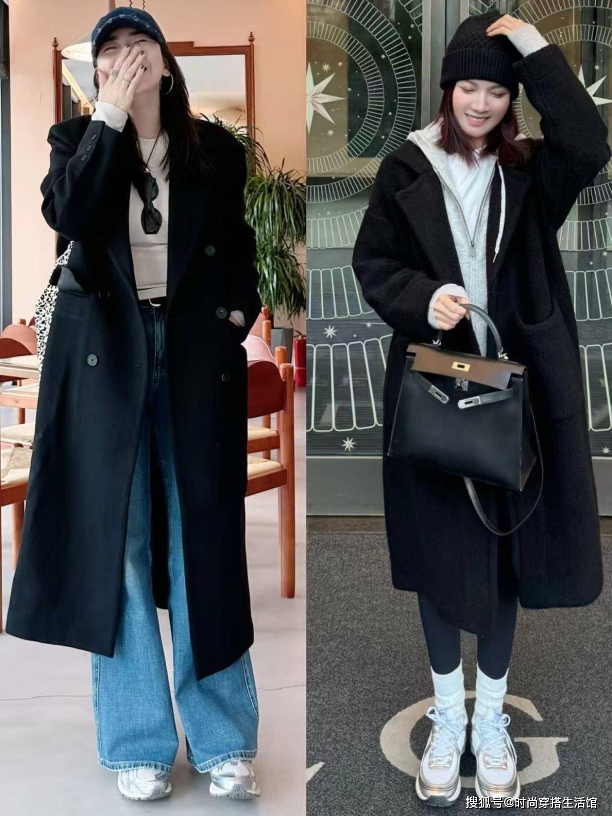最后就是冬天穿黑大衣会更加的舒适百搭,相对比其他颜色的大衣相对挑剔下装和鞋子,那么我们选择黑大衣搭配运动鞋的话不仅降低了色彩的鲜艳感,同时还能满足长时间的穿搭需求,视觉上看起来会更加的百搭和耐看,尤其是冬天穿更有安全感。