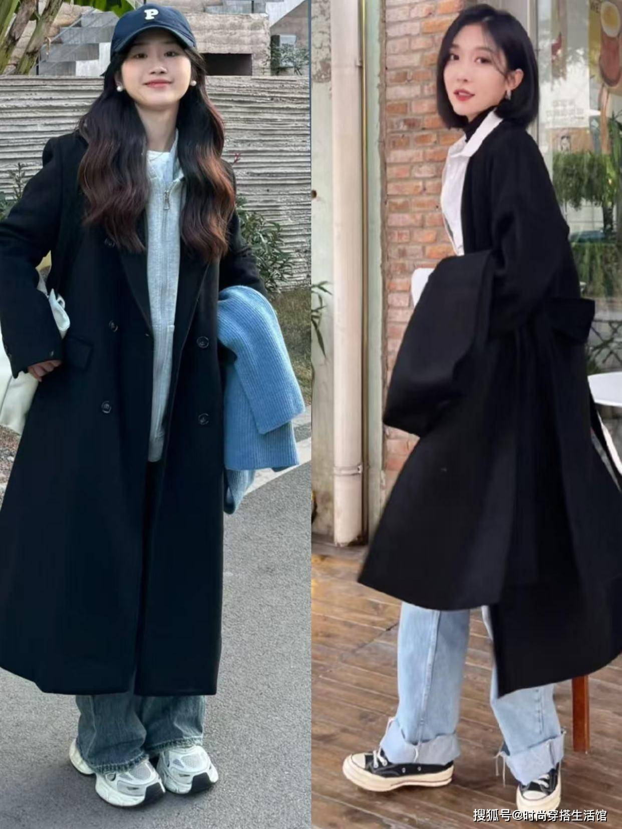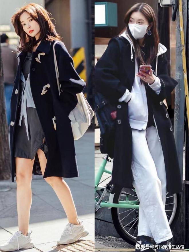 其次就是很多小个子女性总担心穿大衣会拖沓和累赘,其实我们只要选对合适的长度照样不会压身高,尤其是搭配上舒适的鞋子,视觉上会更加的显高显腿长。此外就是靴子也是冬天出镜率最高的单品,很多女性为了追求成熟性就会选择靴子搭配,殊不知这样很容易暴露肤色和年龄,反正我们穿黑大衣搭配运动鞋,完全不用担心会挑剔年龄和人群。