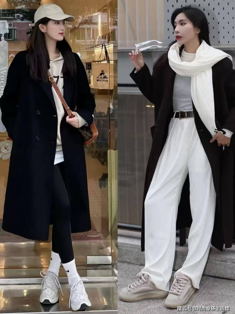 冬天穿黑大衣和运动鞋之所以能够成为今年的主流方式,最关键的一点就是这一组搭配组合不仅实用百搭,同时运动鞋相对比靴子来说会更加的舒适和日常,同时还非常的耐穿,像是一些腿粗、腿型不直的选择搭配靴子的话很容易暴露腿型,反之我们选择搭配运动鞋的话会更加的简单和时髦,不管是日常还是上班都合适。