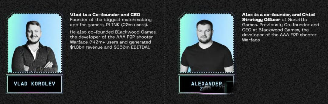 核心成员包括众多游戏行业资深人士。Gunzilla 的创始团队曾主导开发《Warface》——这款多人射击游戏累计吸引 1.4 亿 + 玩家,并创造了超过 10 亿美元的终身收入。此外,团队还打造了 Plink,全球最大的游戏社交网络,用户数超 2000 万。