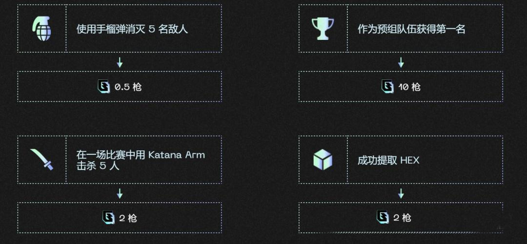 这个游戏也可以边玩边赚,在对战中找到一个叫 "HEX" 战利品箱子,如果你生存下来,就可以通过消耗一定的GAS-GUNZ 和验证 NFT 来打开这个宝箱,这个宝箱是游戏内的游戏道具,做到真正的“吃鸡”。