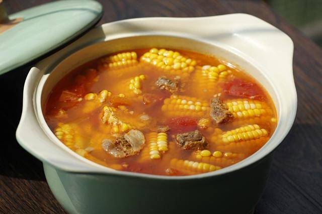 03. 番茄玉米牛腩汤, 牛肉高蛋白、低脂肪,营养丰富,味道鲜美,是补充优质蛋白质来源之一,冬季多吃能滋养健脾暖胃; 而番茄营养丰富,富含大量的维生素C,是菜也是水果,酸甜开胃。玉米是营养丰富的粗粮,多吃能健脾养胃。 这三者是家常的食材, 结合在一起口感鲜美、汤汁酸甜,具有提升免疫力、健脾开胃、促进消化、润燥等功效,是一道简单又色香味俱全的美味营养汤,热乎乎、香喷喷,特别适合冬季进补。