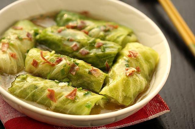 01. 蒸三鲜包菜卷, 猪肉通常被认为是高蛋白食物,它含有人体必需的多种氨基酸,蛋白质含量相对较高,是日常生活中补充优质蛋白质的来源之一; 而包菜一年四季都有,其维生素C的含量是西红柿的3.5倍,含钙量是黄瓜的2倍,还具有有抗菌消炎作用能缓解感冒症状。 将它俩搭配在一起蒸,鲜美营养又清淡少油腻, 冬季吃它正合适,多做给孩子吃有助于提升抗病力,健康过寒冬。