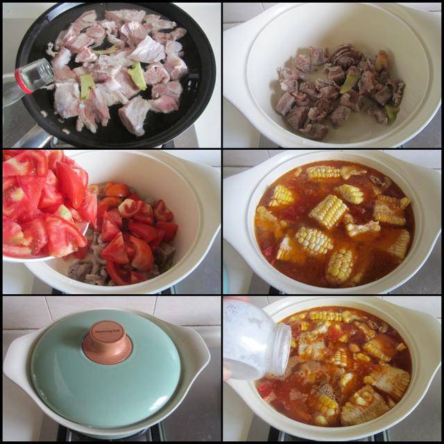 推荐菜谱【番茄玉米牛腩汤】 原料: 牛腩 1盘 番茄 4个 水果玉米根 姜 少许 胡椒粉 少许 葱花 少许 油盐 少许
