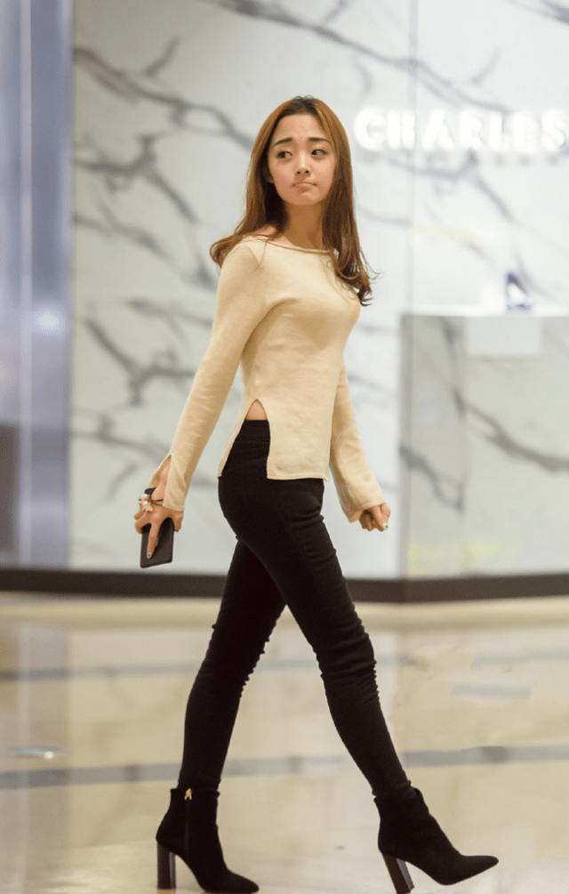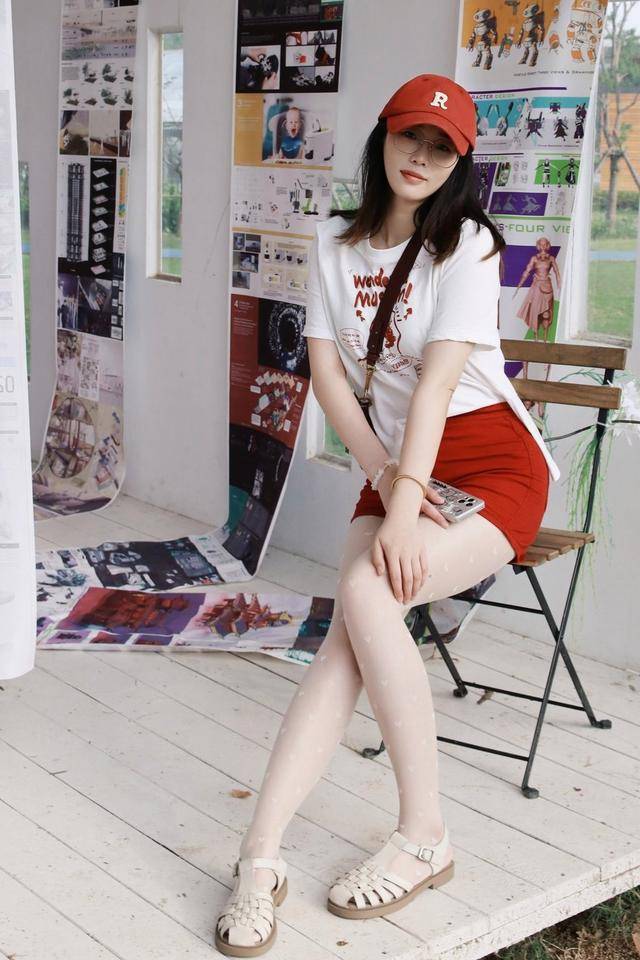 看到这个小姐姐,其实大家看到第一眼或许会觉得简单朴实,但如果大家仔细再看一看就会觉得这是一套很有小姐姐自己想法的搭配。在上半身选择了一件乳白色的上衣,并在侧边进行了开叉处理,这个小细节其实很好的把小姐姐的身材比例拉长了,同时这个干净的配色也很符合小姐姐的气质,一种平淡却又不自觉被吸引住的邻家少女的感觉。