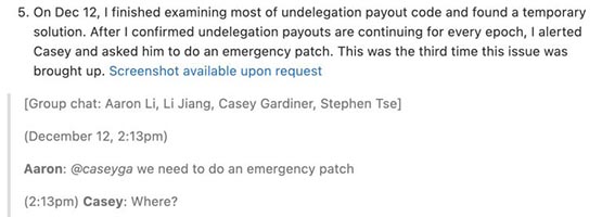 除了额外增发大量代币的离谱事件之外,承包商兼漏洞发现者 Aaron 和首席工程师 Casey 之间的争论也引起了社区的广泛关注。
