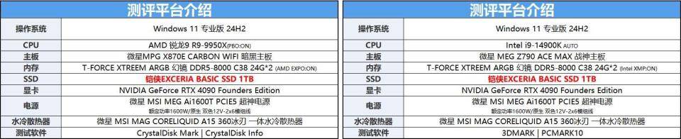 两套平台分别对铠侠EXCERIA BASIC NVMe SSD 1TB 进行理论性能测试,游戏性能测试等。