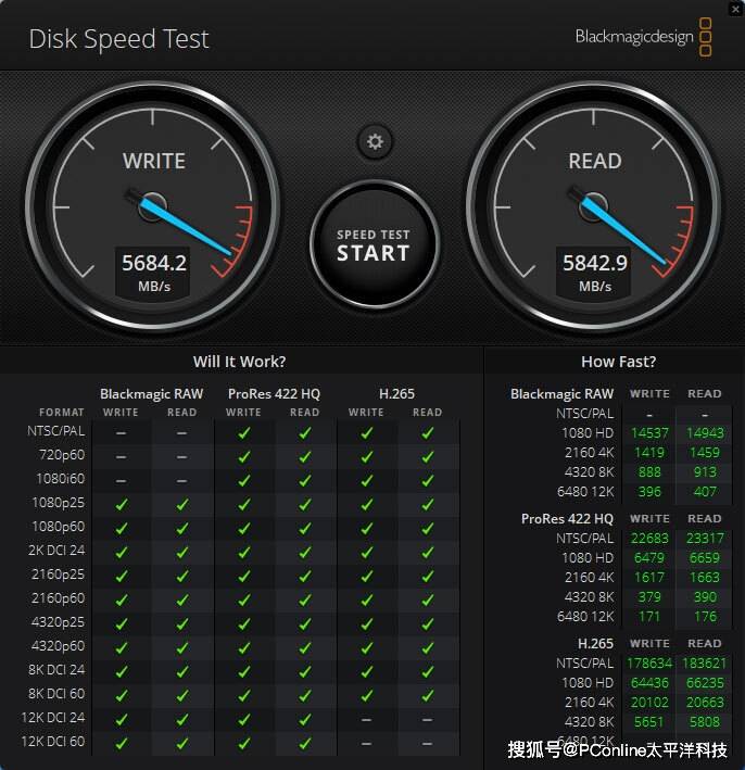 BMD Disk Speed Test测试中反而硬盘真实的媒体读写性能,铠侠EXCERIA BASIC SSD 1TB固态硬盘CDM性能读取速度5843 MB/s,写入速度5684 MB/s,远比同级别的GEN4固态硬盘实际性能强多了。