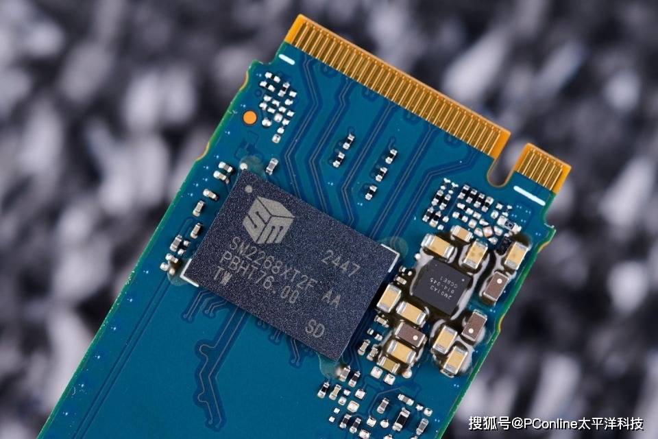 撕开贴纸(警告:撕毁贴纸可能影响保修),我们可以看到主控芯片和单颗NAND闪存颗粒(1TB版本)。主控制器为SMI家的SM2268XT,专门为DRAM-less (无缓存) 的 PCIe Gen4 NVMe SSD方案应用而优化设计的芯片,内部支持4个NAND通道,且支持TLC 和 QLC 3D NAND 闪存颗粒。