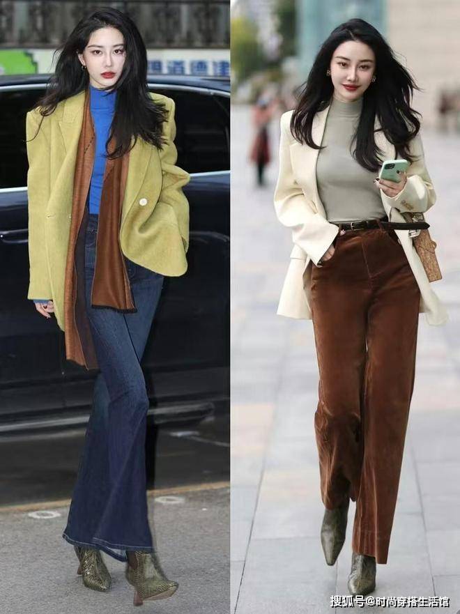 对于冬天来说想要既时髦和显瘦的话,那么我们自然不能少了喇叭裤,毕竟喇叭裤能够有效的平衡造型的身材比例,让我们的腿部线条看起来更加高挑显腿长,尤其是对于臂部和小腿丰满的女性,我们选择穿喇叭裤简直就是遮肉显瘦的神器,能够有效的巧妙遮挡住大腿和小腿处的赘肉,同时还能展现出优雅和时髦的脚踝比例,更显复古和时髦。
