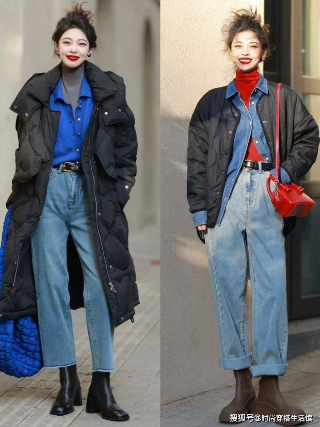 面对冬季穿搭我们首先要做到的就是优化出身材比例,手动拉高腰线,毕竟中年女性选择“冬裤”穿搭很容易出现臃肿和拖沓的现象,那么我们就需要塑造出腰线穿搭。比如我们可以选择短款上衣搭配高腰裤,或者是将上衣塞进下装里,这样不仅可以拉长身形,同时还能让整个人的比例更显高挑显腿长,完美的展现出身材曲线。
