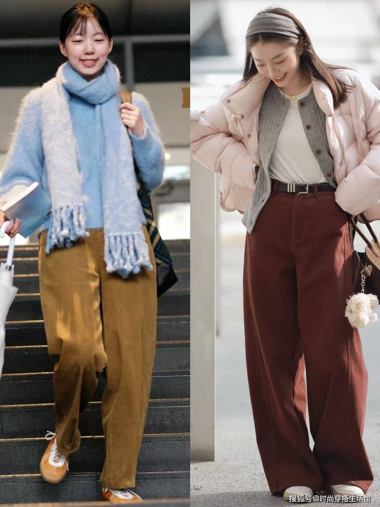 其次冬天最常见的还有灯芯绒裤子,俗话说时尚又是一个轮回,对于80、90后的女性来说并不陌生,主要是因为灯芯绒材质不仅复古同时还是承载我们记忆和情怀的单品。