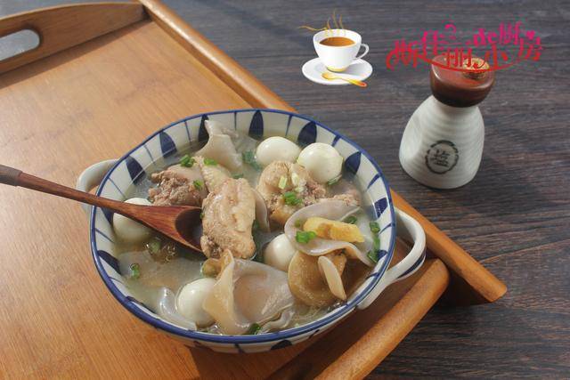 第一道汤:木耳鹌鹑蛋鸡汤,鸡肉高蛋白、低脂肪,营养极易吸收,是公认的滋补食材,将鸡肉炖汤,味道鲜美,还有助于提升免疫力,抵御流感的病毒的侵袭。 炖汤时加入了养肺排毒的木耳和“ 天然的补脑丸”的鹌鹑蛋,营养互补,好喝翻倍,有助于于孩子增强抗病力,是冬季补虚健体的佳品。