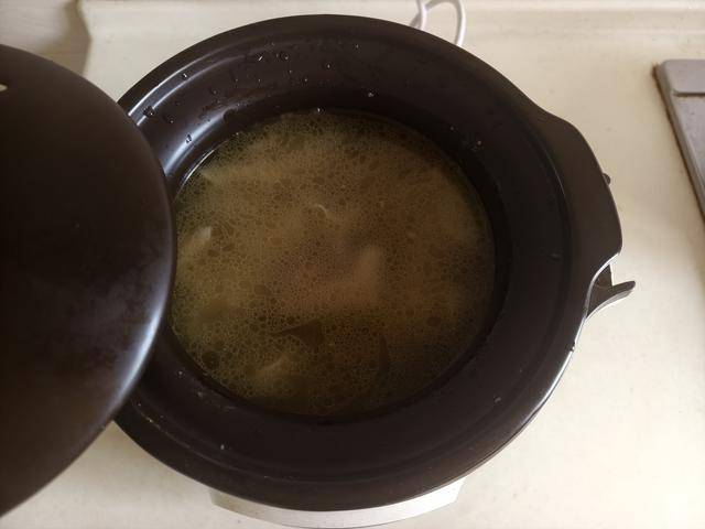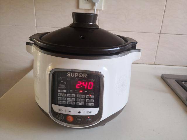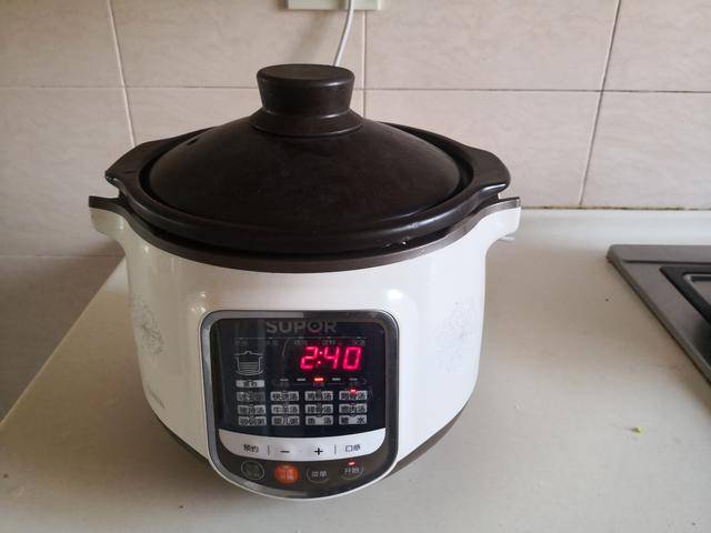 3. 加盖后按下电炖锅上炖骨汤的功能键;