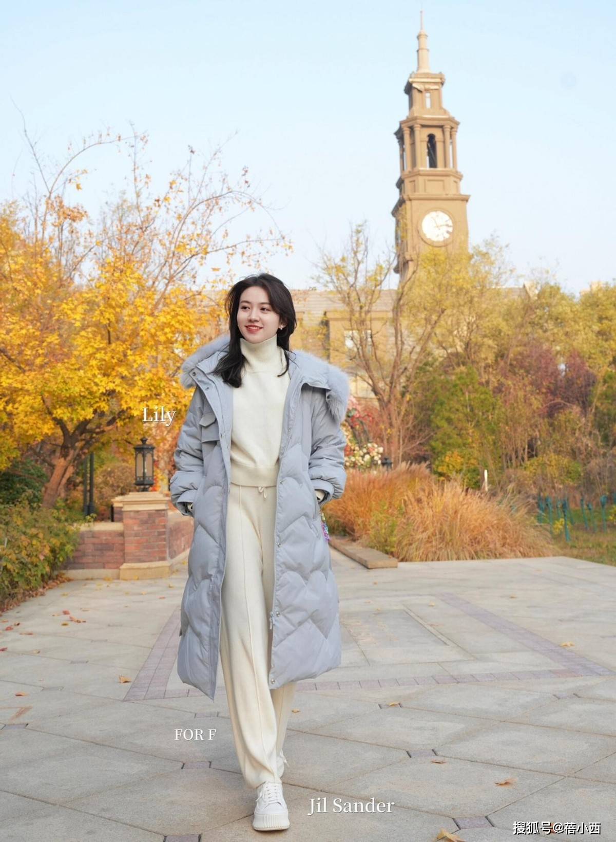 高个子也可以尝试中长款的羽绒服,特别是过膝不过踝的经典款,保暖效果杠杠的,还显得特别有气场。如果你选对了款式和颜色,那简直能瞬间提升你的时尚level,打个比方,在逛街的时候穿浅蓝色长款羽绒服配阔腿裤,一点都不沉闷压抑,冬天出门绝对是一道亮丽的风景线。