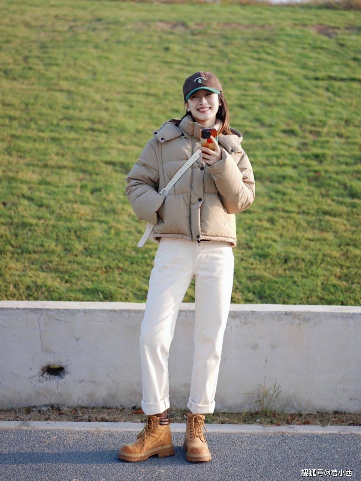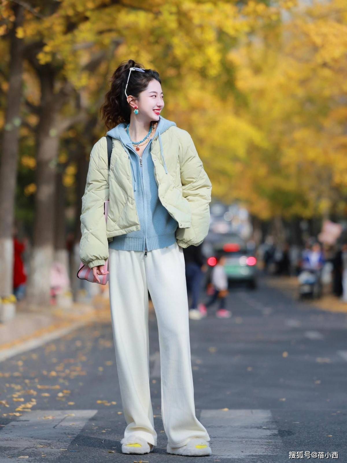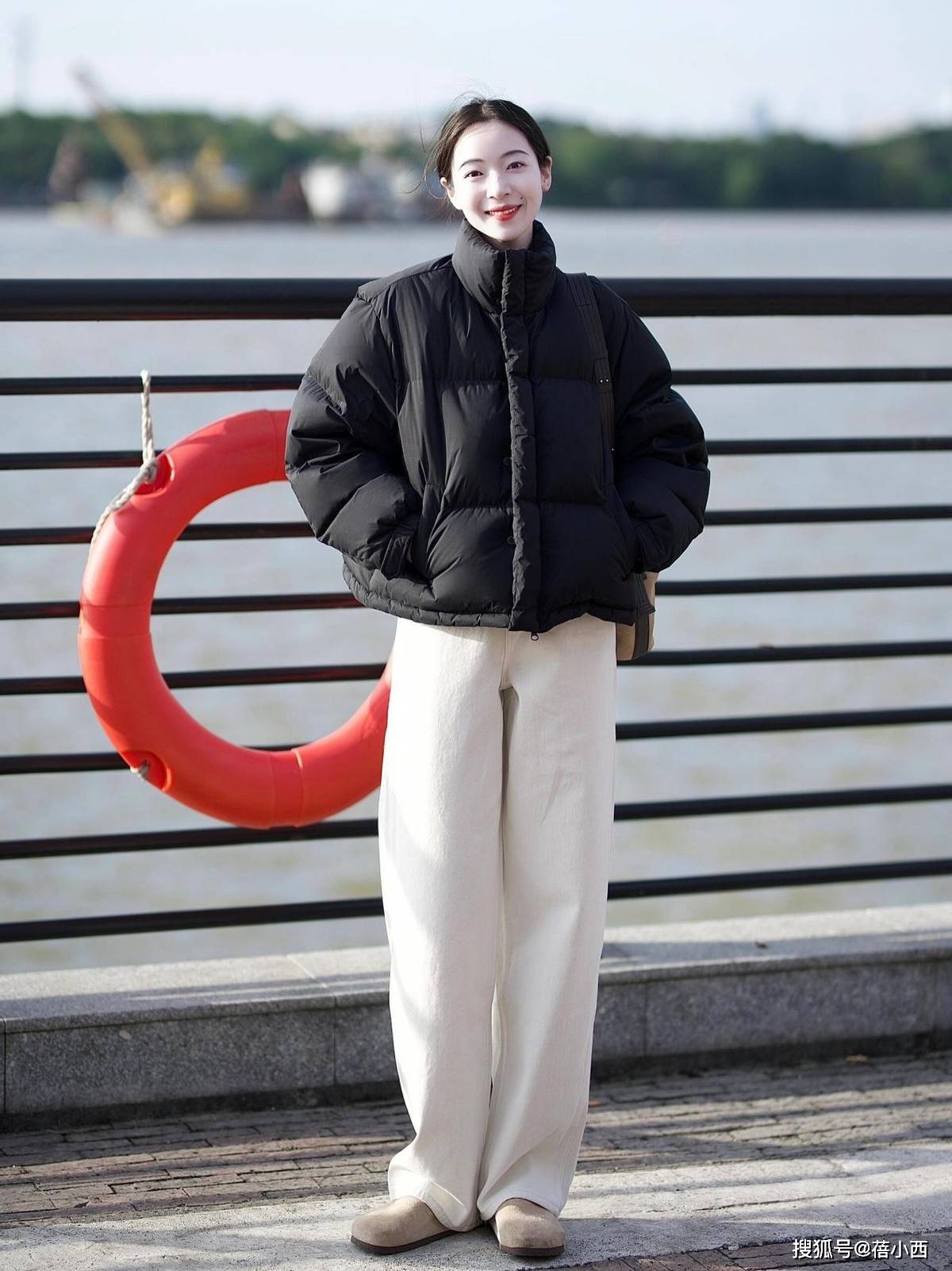 羽绒服搭配阔腿裤和平底鞋也很实用,这种组合特别舒适大方,毕竟羽绒服的保暖性能很强,与阔腿裤的休闲风格相结合,可以营造出一种轻松自在的氛围,而平底鞋的加入,则进一步强化了这种舒适度,不喜欢穿高跟鞋的姐妹们有救了。