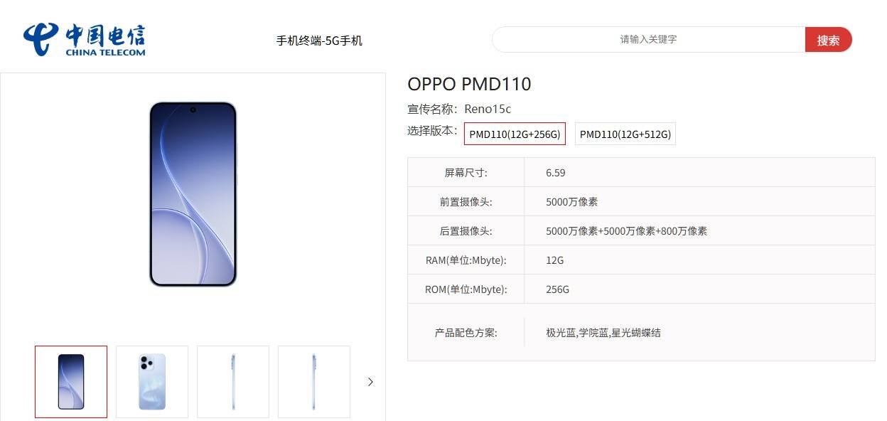12月10日消息,15系列已于11月17日正式推出标准版与Pro机型,搭载天玑8450处理器,起售价2999元。发布会现场同步官宣,定位“入门之选”的OPPO Reno15c将于12月下旬发布,目前该机已现身中国电信终端产品库,核心配置与外观细节正式曝光。