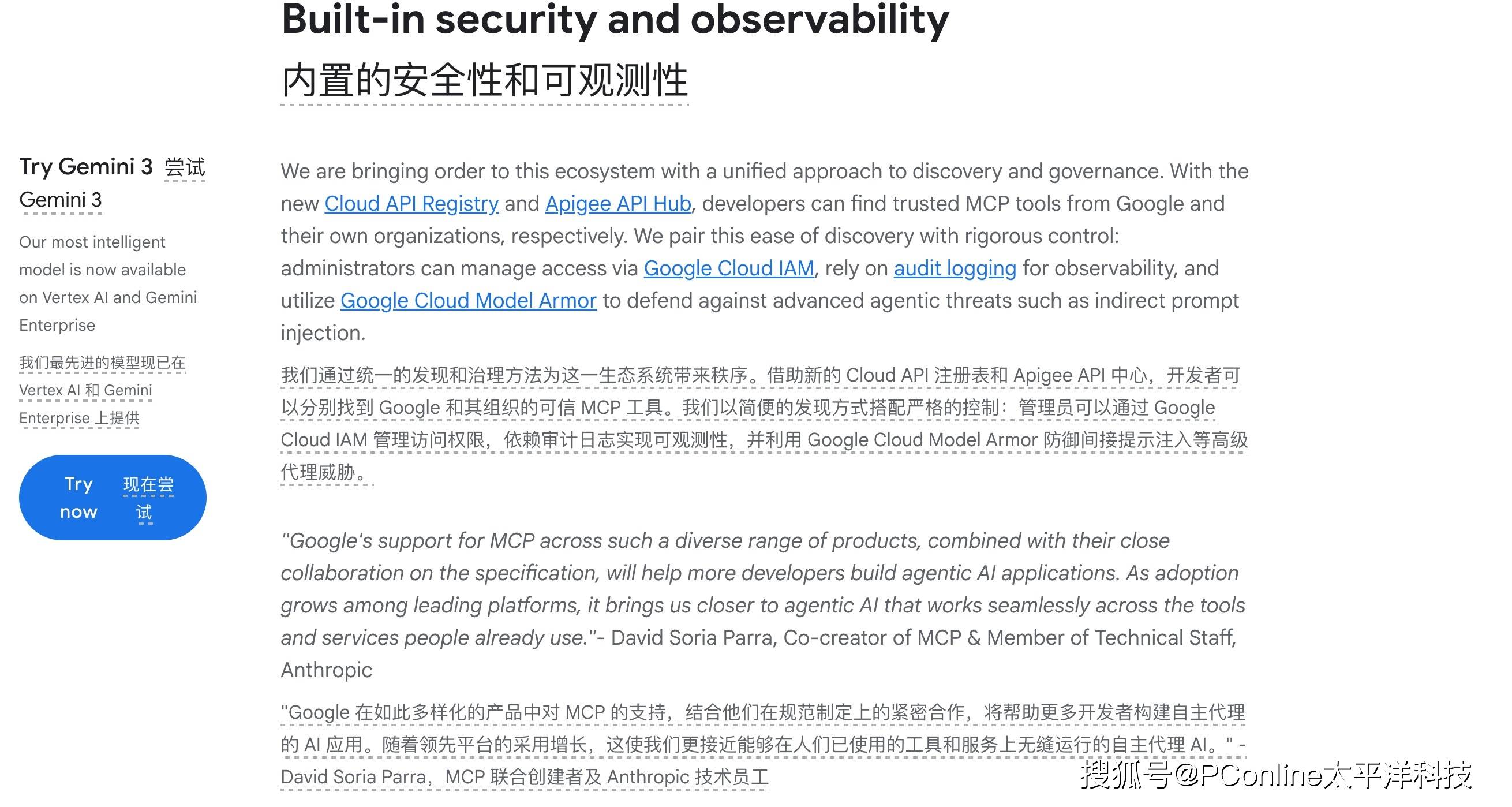 当然,对于企业级用户来说,光有连接是不够的,安全和治理才是重头戏。谷歌显然也想到了这一点,他们利用成熟的API管理产品Apigee,将标准API直接转换为MCP服务器。这样一来,企业原本用于管理传统应用程序的那套严密的治理策略,现在可以无缝复用到AI智能体身上。