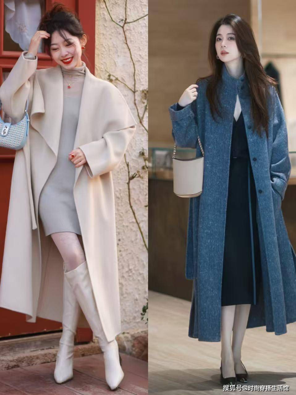 其次有很多人会担心冬天穿大衣会显得闷热和厚实,尤其是大衣搭配的时候更担心会穿出臃肿显胖的效果,那么这时候的我们可以借助留白的方式来降低造型的臃肿感,从而让我们的穿搭变得更加轻盈和高级。比如我们选择大衣可以搭配半身裙和九分裤、露出大腿肌肤或者纤细的脚踝,这样看起来没有技巧的打破却能让我们的造型变得更优雅,完美的展现出身材魅力和气质。