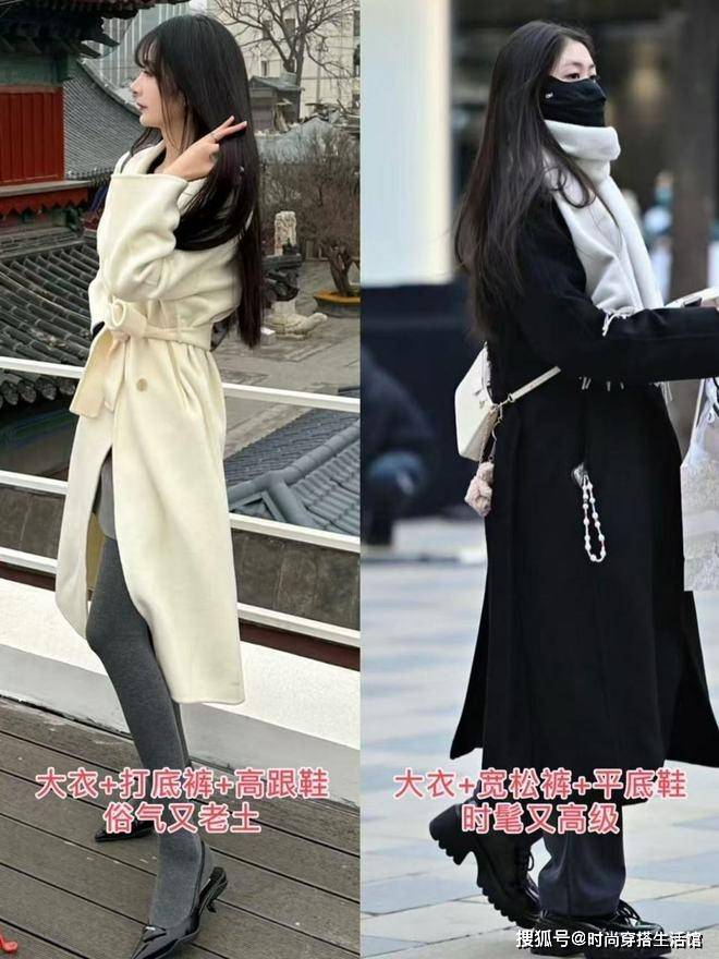 ⑴大衣配打底裤暴露腿型,宽松裤更遮肉显瘦