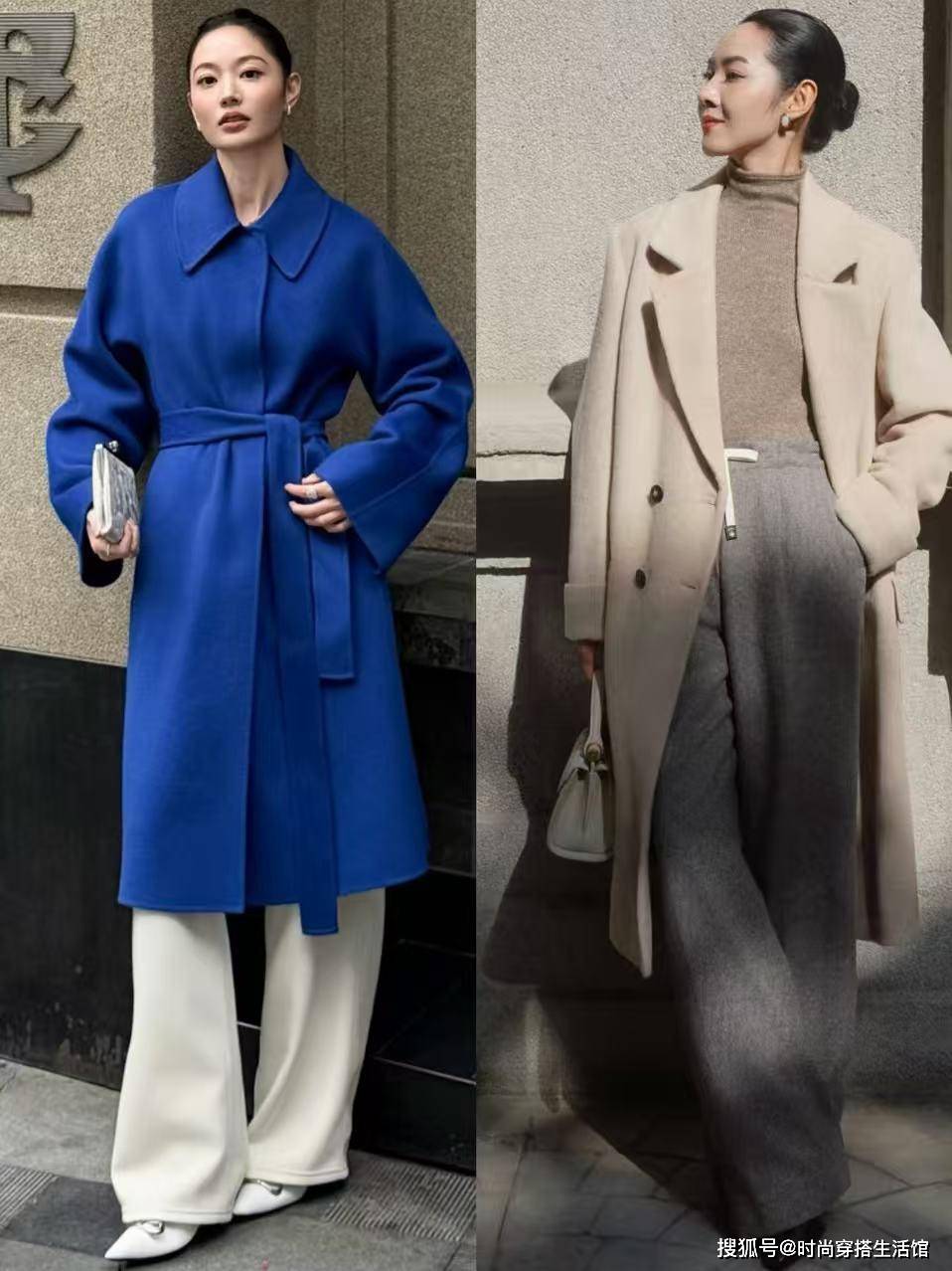 冬天穿大衣我们首选的就是阔腿裤,虽然说阔腿裤和直筒裤并没有本质上的区别,最大的不同就是阔腿裤的裤腿版型相对宽松,对于腿粗、跨宽和腿型不直的女性来说会更加的友好,能将我们腿部的赘肉全部遮挡起来,就算选择搭配大衣整个造型慵懒和松弛,如果担心穿阔腿裤臃肿和拖沓的话,我们还可以选择挽起裤脚,能够露出鞋面,再搭配上老爹鞋或者带跟的鞋子,轻松就可以彰显高级气场。