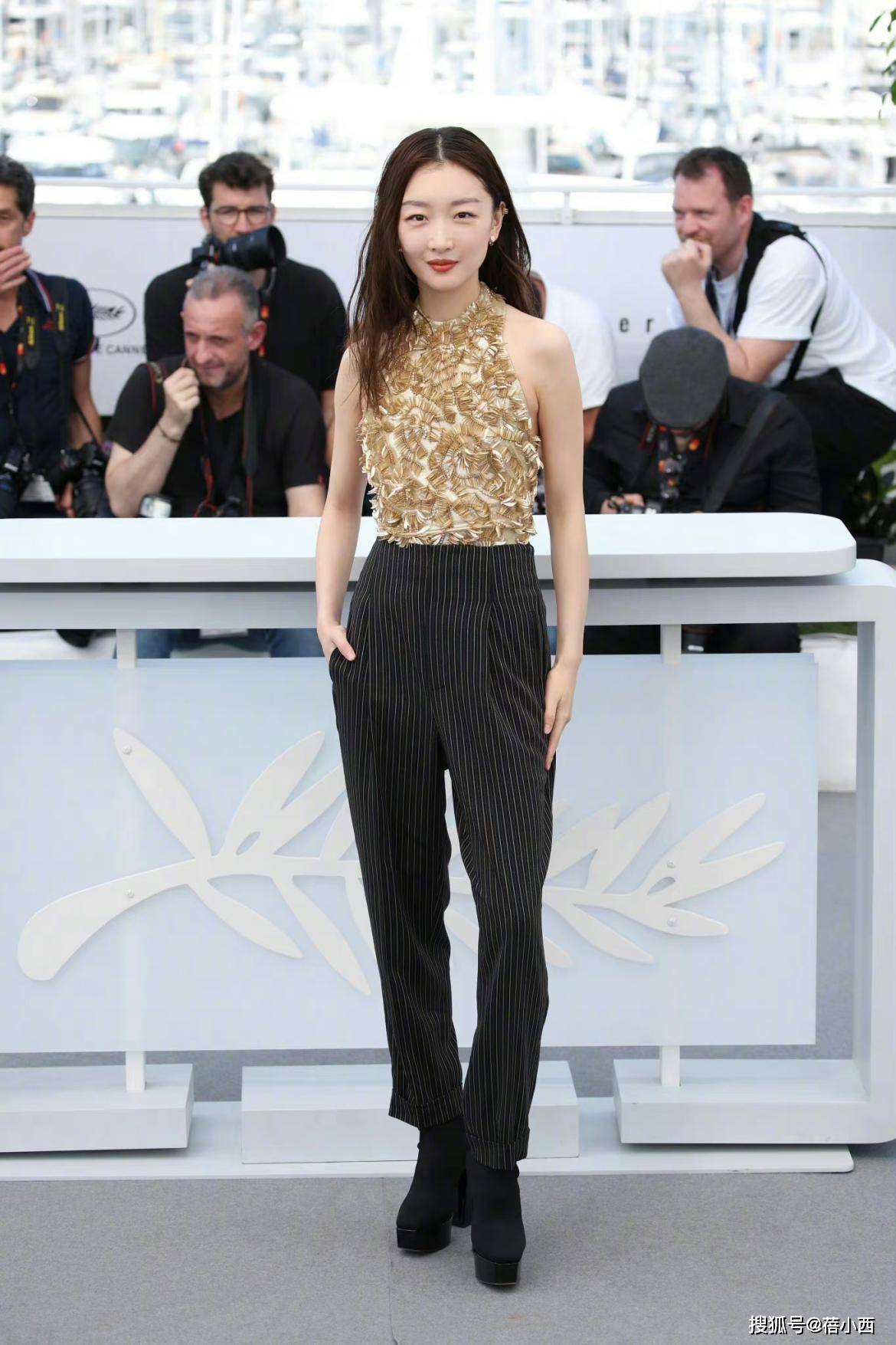 找对自己适合的风格真的很重要,我们千万不要因为自己的身材不够出挑,或者是自己的气质不够好就随意的去穿,要找到最适合你的穿搭风格,才能够放大你的优势,像周冬雨虽然个子不高,但是她很会搭配,这一次选择一件金色的挂脖上衣,还配上了条纹裤,显得特别有韵味,露背设计更是展现出了风情万种的感觉。