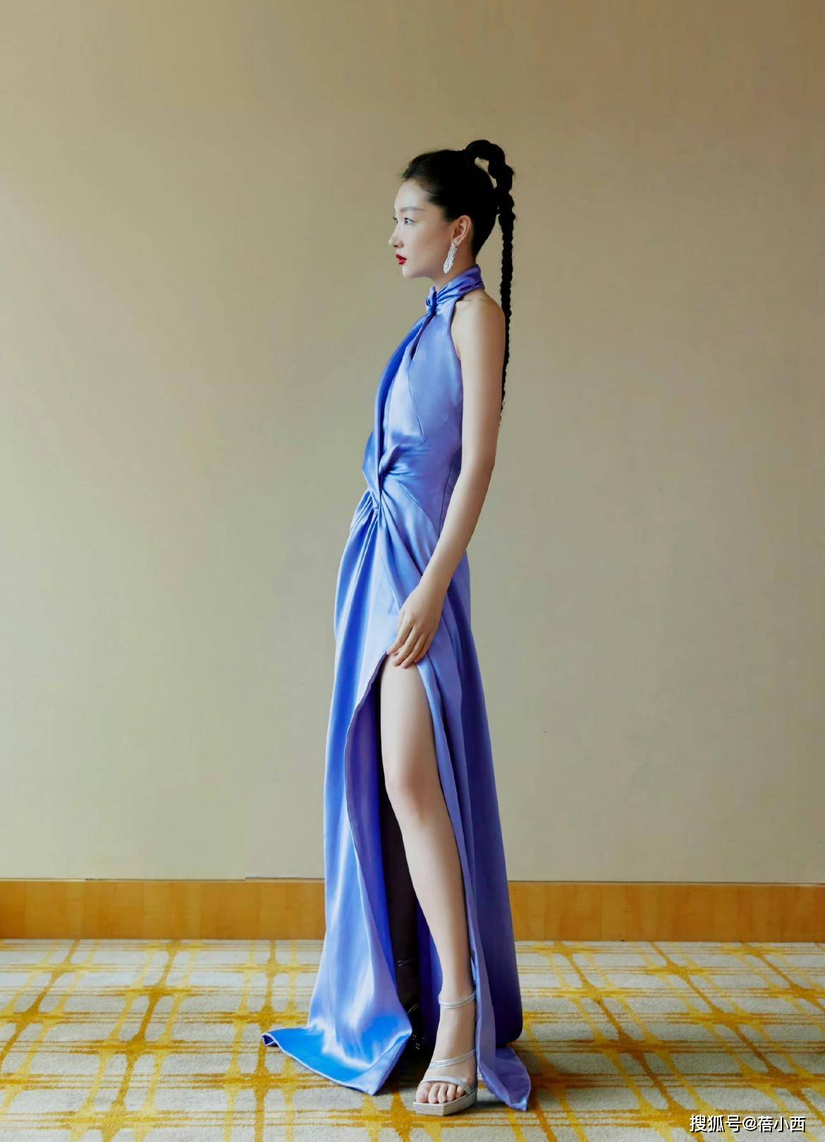 小个子穿长裙尽可能的露出你的双腿吧,如果裙长拖地,那么你可以试着给自己入手这种开叉的长裙,像周冬雨这身蓝色连衣裙,侧面开叉,高开叉的设计拉伸了腿长,显得比例很好,再加上将头发扎起来也显得比较利落,完全不觉得臃肿。