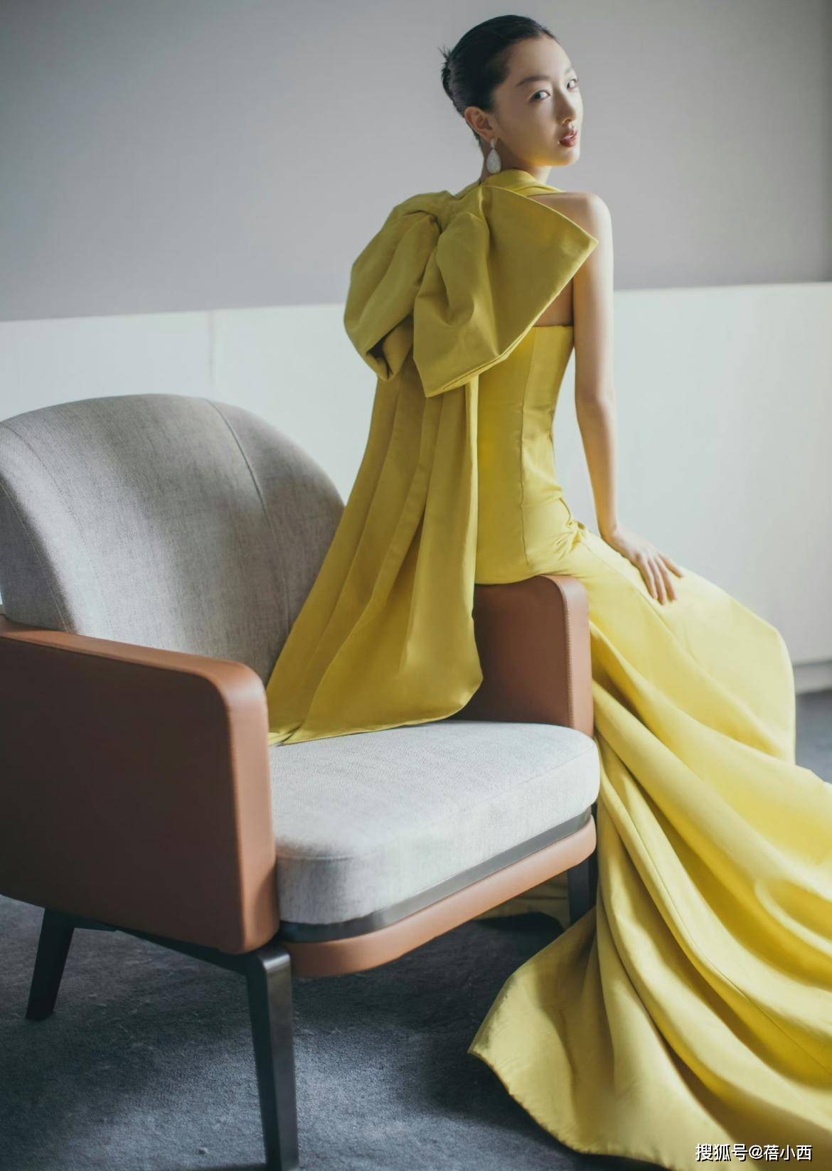 周冬雨虽然个子不高,但是她的时尚驾驭能力很强,下面这条黄色连衣裙也展现出了活力满满的感觉,而且连衣裙后背结合了大蝴蝶结的设计,这样的个性化剪裁真是别出心裁呢,又能够为这身造型增加俏皮感。