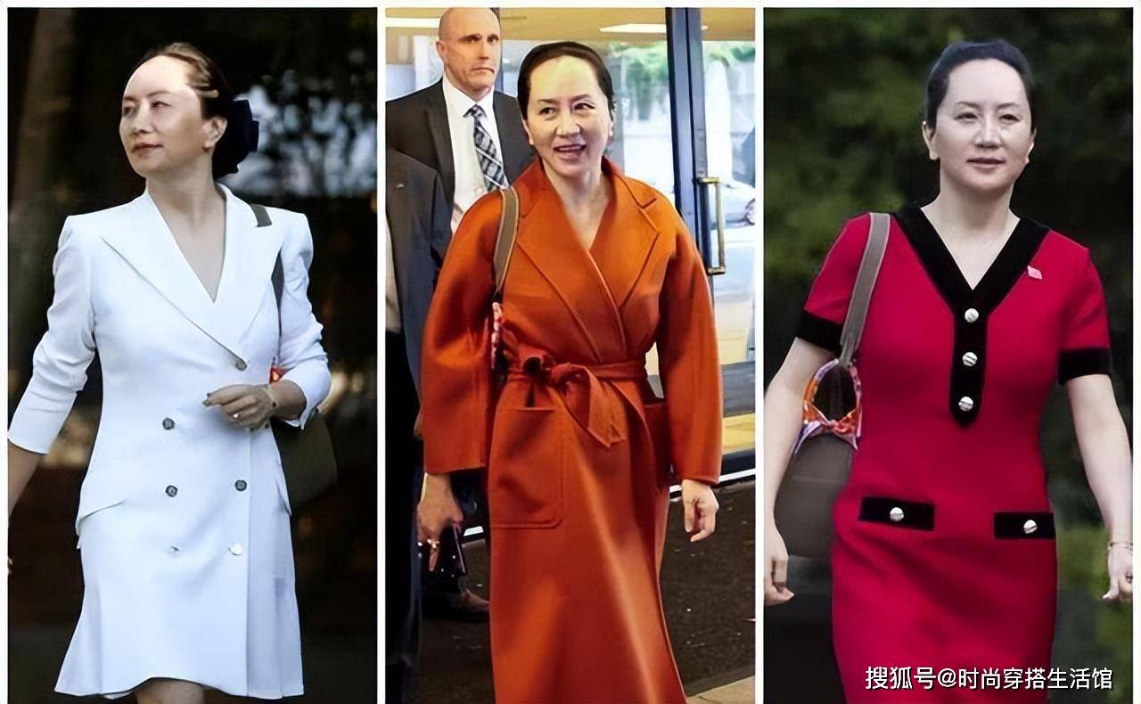 在孟晚舟的穿搭中,很少见到''五颜六色''的调色盘现象,追求整体色彩搭配的统一,是优雅的基础。在她的日常穿搭中,基本上都会把色彩控制在一到两个颜色,使用花色时也会将花色挑选在小面积的饰品的位置,不会占到穿搭面积的大头。