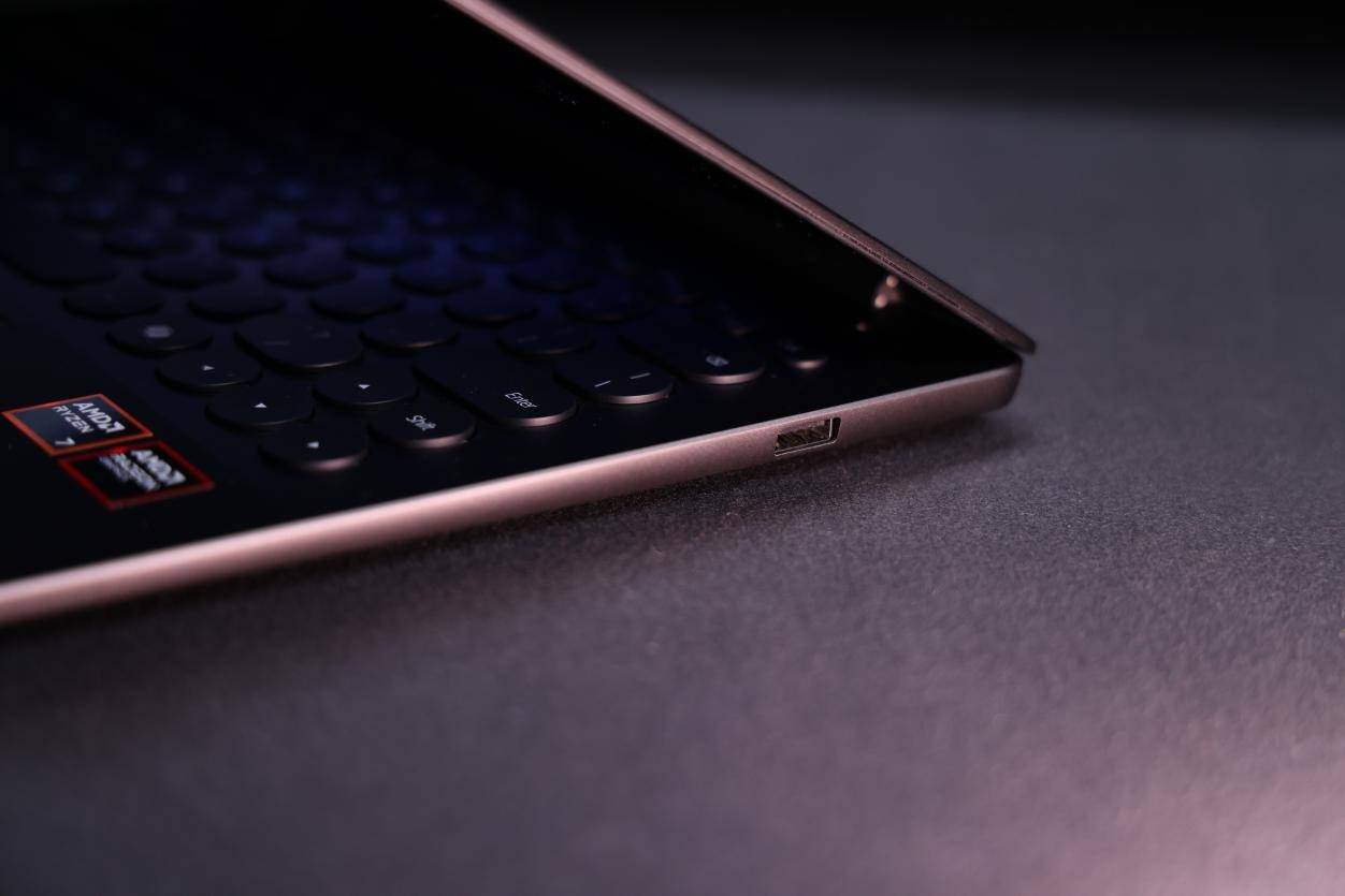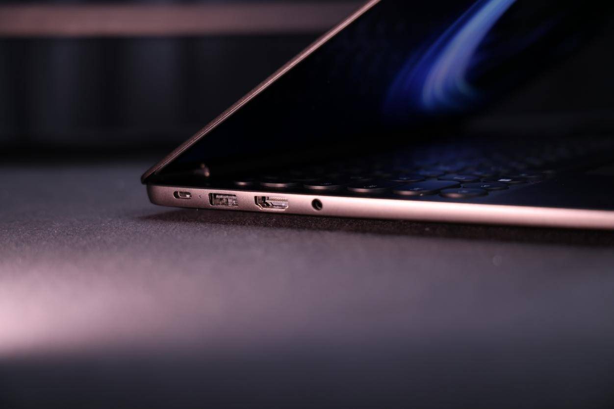 接口方面,共有一个全功能USB-C接口、两个USB 3.2 Gen 1 Type-A接口、一个HDMI接口、一个3.5mm接口。