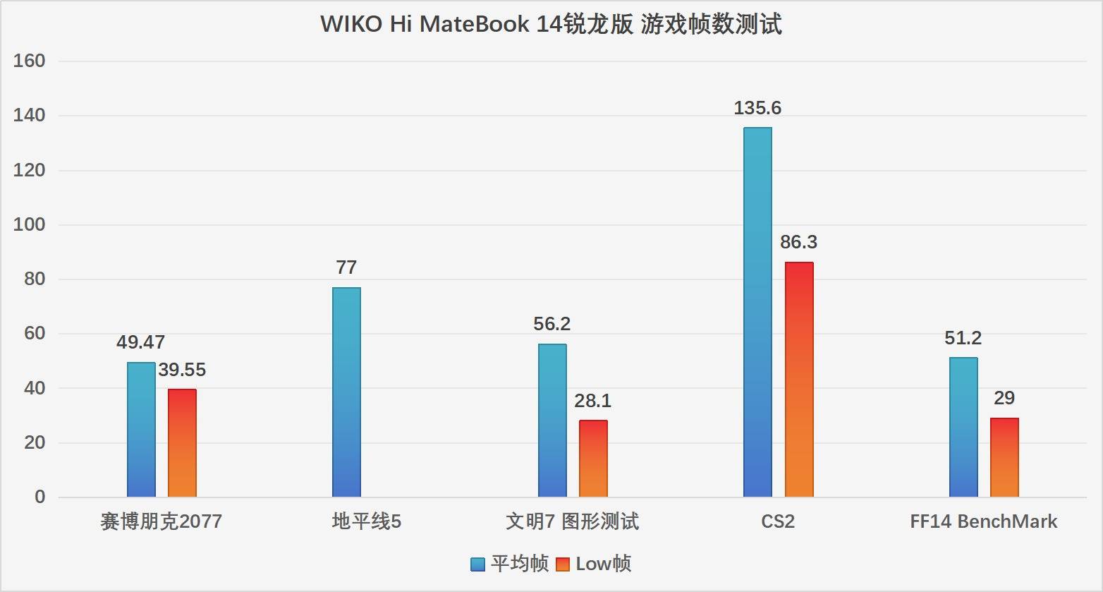 对于轻薄本而言,游戏虽非核心场景,但Radeon 780M(12CU)却具备了相当的娱乐潜力。其核心优势在于规格厚道且驱动更为完善,这为众多非硬核玩家在轻薄本上获得可玩的游戏体验提供了切实保障。Hi MateBook 14锐龙版搭载的32GB双通道LPDDR5 6400MHz高频内存基本完整释放出Radeon 780M该有的性能,所以我们也来看下其在游戏中的表现,如下图所示: