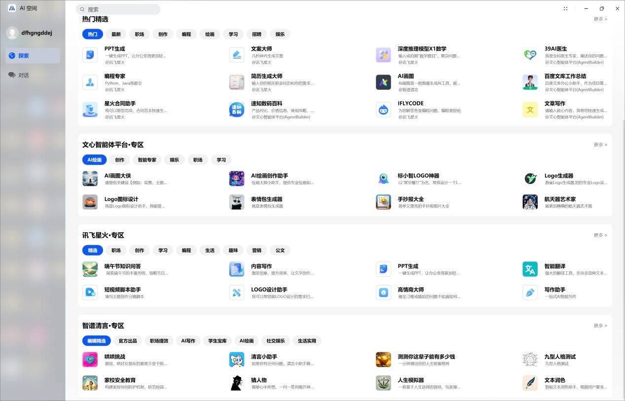 也就是说我们不需要再一个一个打开网页或者下载客户端,在AI空间中便可以直接调用模型来为我们提升效率,并且细分功能的快捷入口也让我们无需进行指令的输入或额外的点击,更加方便使用,比如PPT的制作、生成各类型图片、文本生成等等,100+主流智能体都可以帮忙搞定需求。