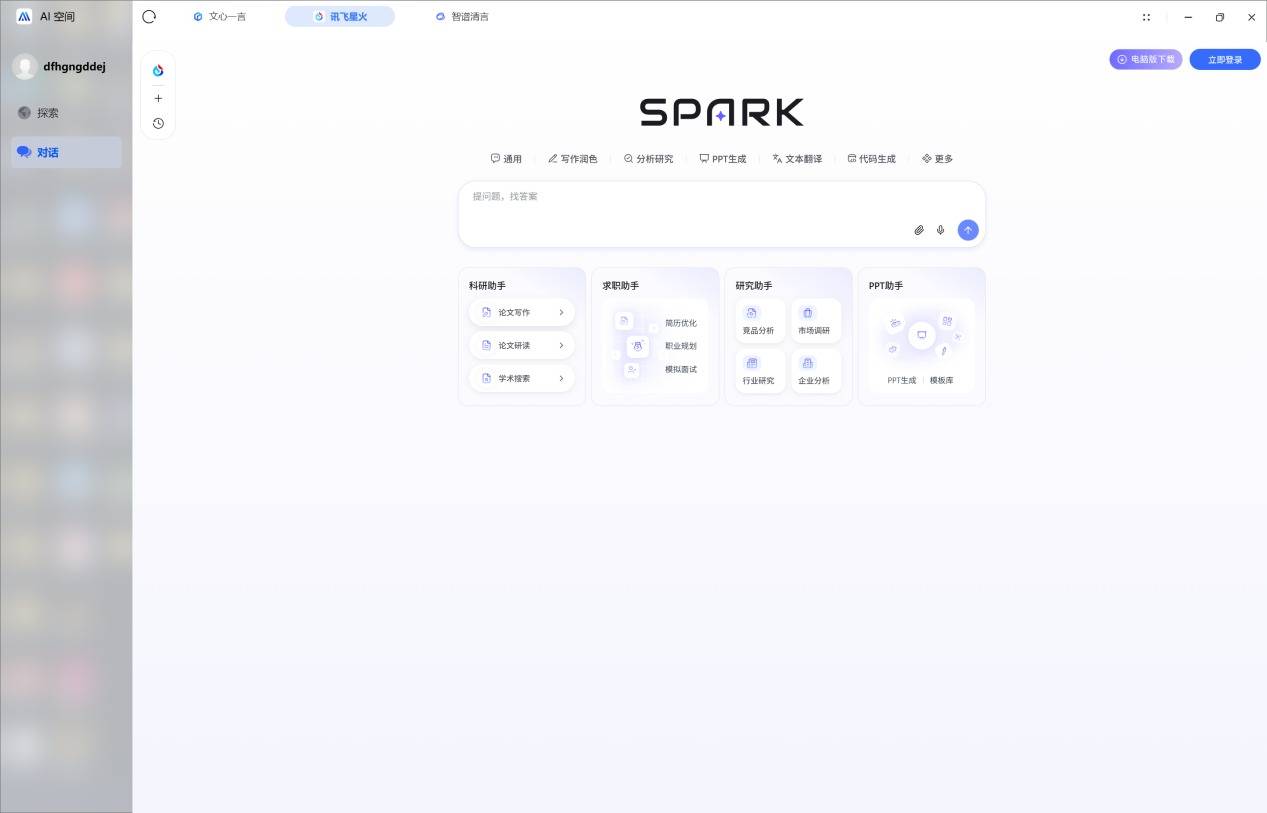 WIKO Hi MateBook 14系统中内置了“AI空间”,集成了目前国内市面上的一线模型——文心一眼、讯飞星火、智谱清言等100+智能体供用户进行选择和使用,值得一提的是,上述三个模型均是网页版/客户端版本的全功能版本,非阉割版本,在AI空间首页,还帮我们细分出了办公和学习时常用的AI功能。