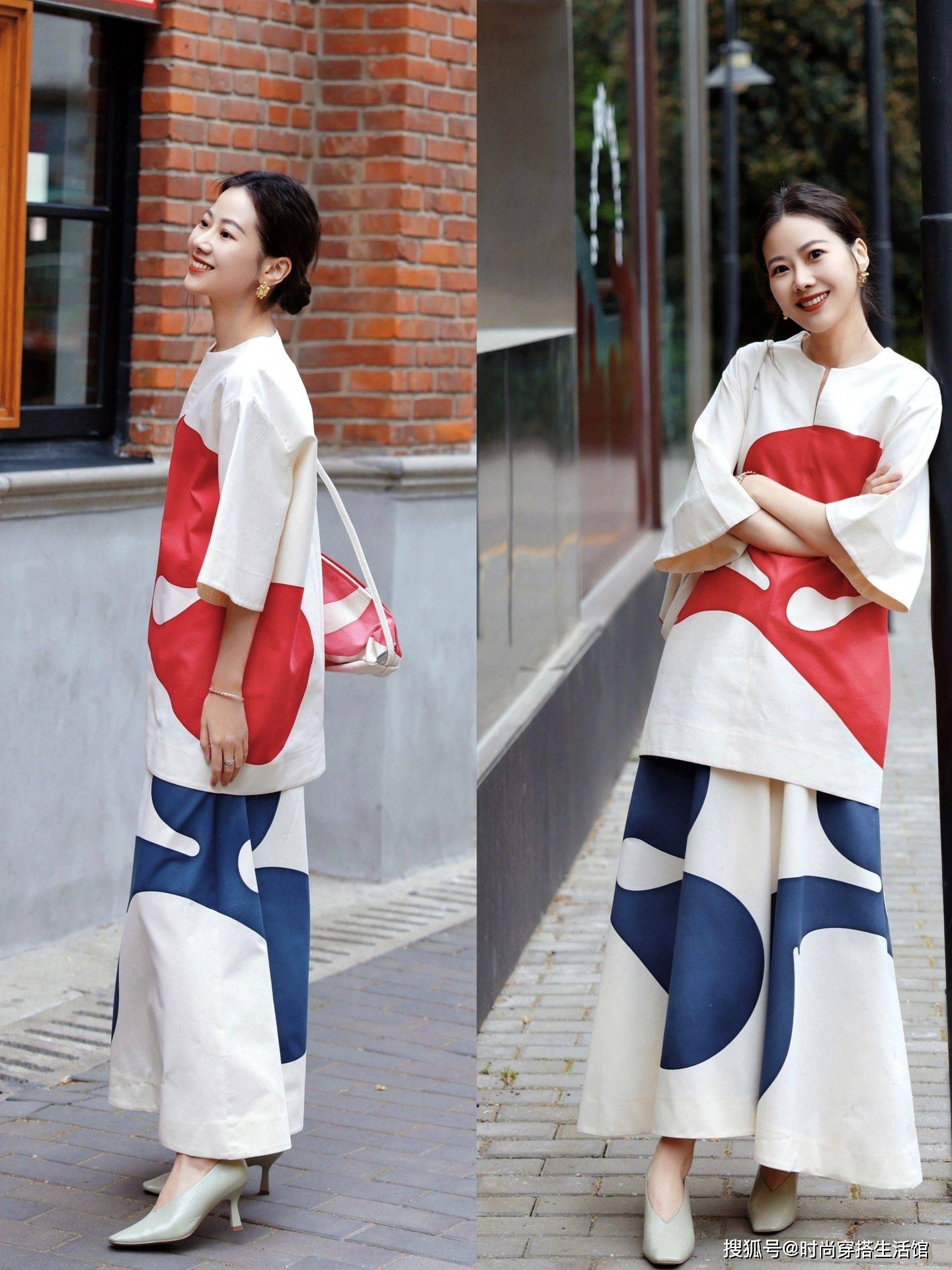 在穿搭时,大家可以考虑用简繁结合的方式,简约的衣服结合一些具有设计感的服装。从视觉上来协调,整个造型更加具有美感,就像我们在穿一些纯色单品时,便可以在下半身去搭配一些印花的服饰,从而进行协调和中和。