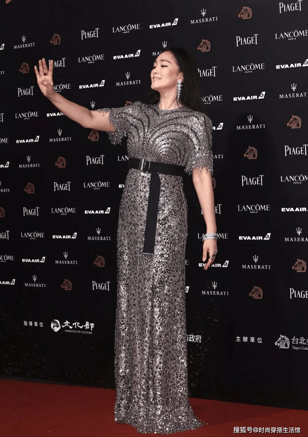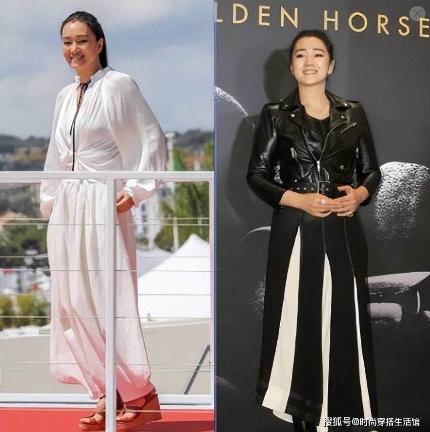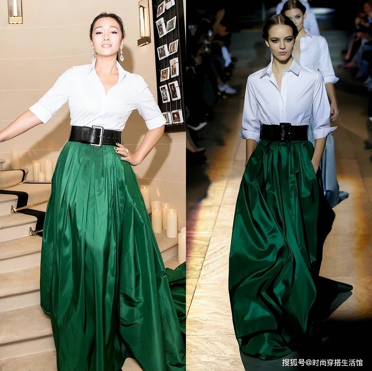 人到中年以后,身材很难保持百分百的完美,总会有“摆摆肉”或者是小腹松弛的问题。在巩俐的身上,为什么穿长裙一点也不沉闷?主要是颜色的选择上很基础,加上用了吸睛的小元素,有1+1>2的效果。