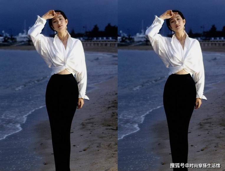 因为长裙整体的面积比较大,尽量要以基础色为主,想要清爽一些选择白色,想要有质感,可以选择黑灰色。如果觉得太单调,选择一些亮片元素来点缀,不容易忽视又好驾驭。