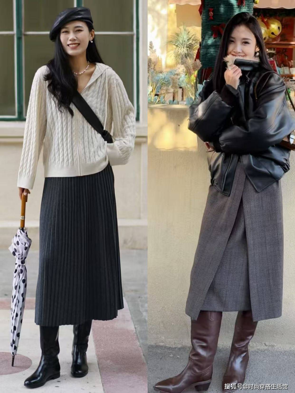 究竟什么叫裙中靴呢?简单来说就是穿裙子时候下面搭配的靴子,而且我们裙子还不会将靴子完全遮挡住,但有些人会担心选择这样的穿搭方式对于冬天来说保暖性不足和考验身材,其实我们只需要选对合适的方法和技巧,照样可以穿出好气质和高级感,不管是小个子还是高个子女性都能轻松驾驭。