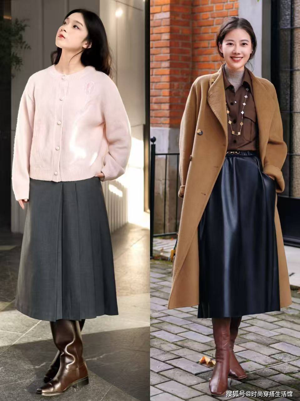 其次秋冬季节最常见的直筒裙也就是H型的裙子,直上直下的版型设计能够有效的帮助我们修饰身材线条,从而让我们的穿搭看起来更加的高挑显腿长,搭配上靴子能够凸显出淑女又灵动的氛围感,超级适合30+的女性穿,不仅拥有时髦的减龄效果,同时女人味十足,视觉上会更加的优雅和迷人。