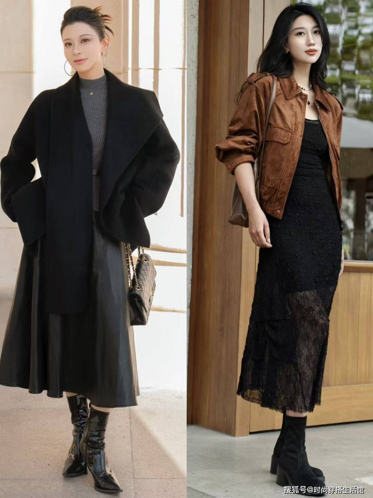 对于冬天来说靴子一点都不陌生,毕竟是秋冬最常见的单品,尤其是和裙子搭配在一起的时候,简直就像是打开了新大陆和新天地,对于冬天来说我们选择的穿搭方式不仅要保暖同时还要有洋气感,那么就不能少了裙子和靴子,中年女性选择这组搭配组合不单单只有酷飒干练感,同时还多了一种混搭的时尚狂野和甜美风。