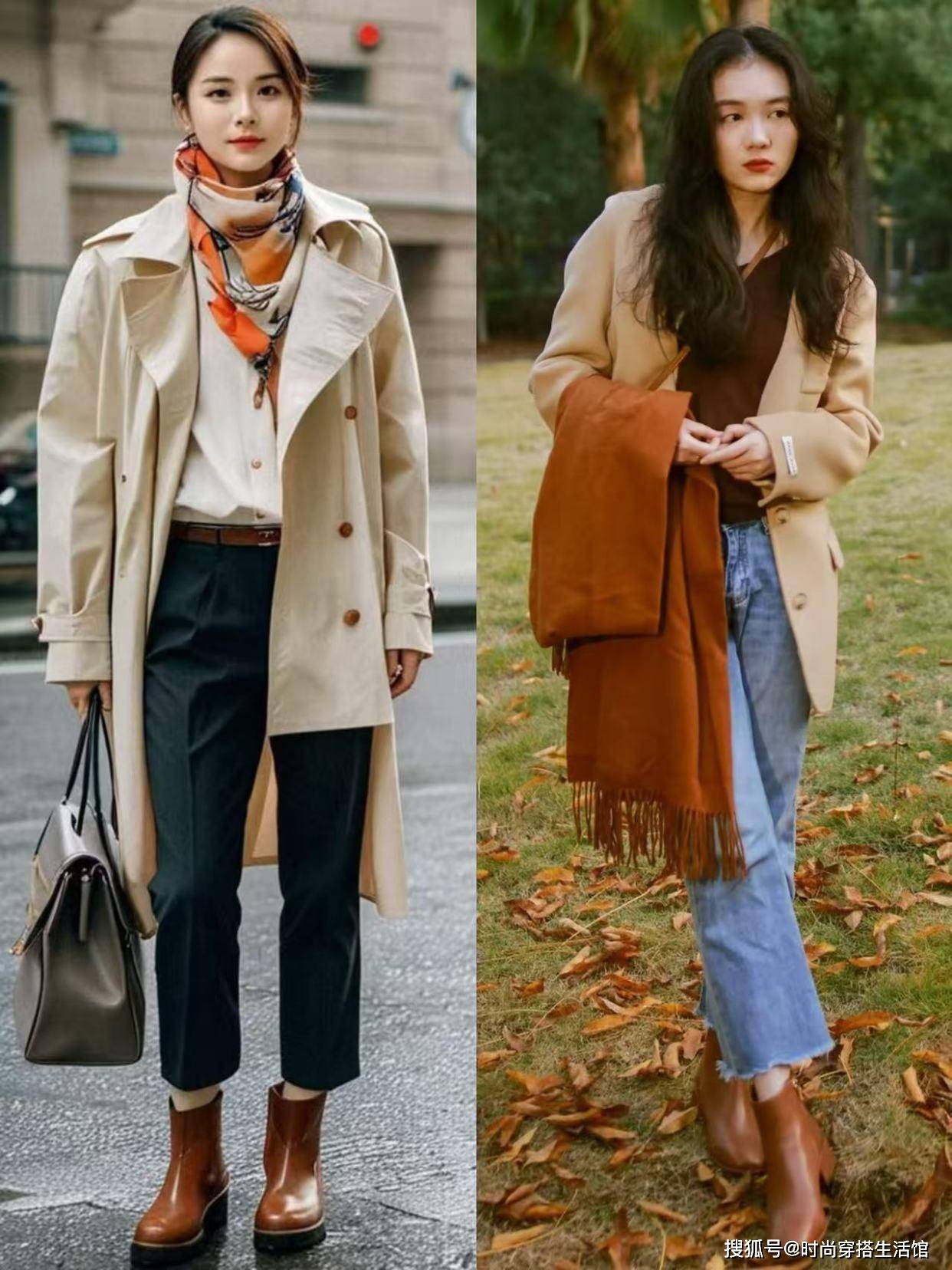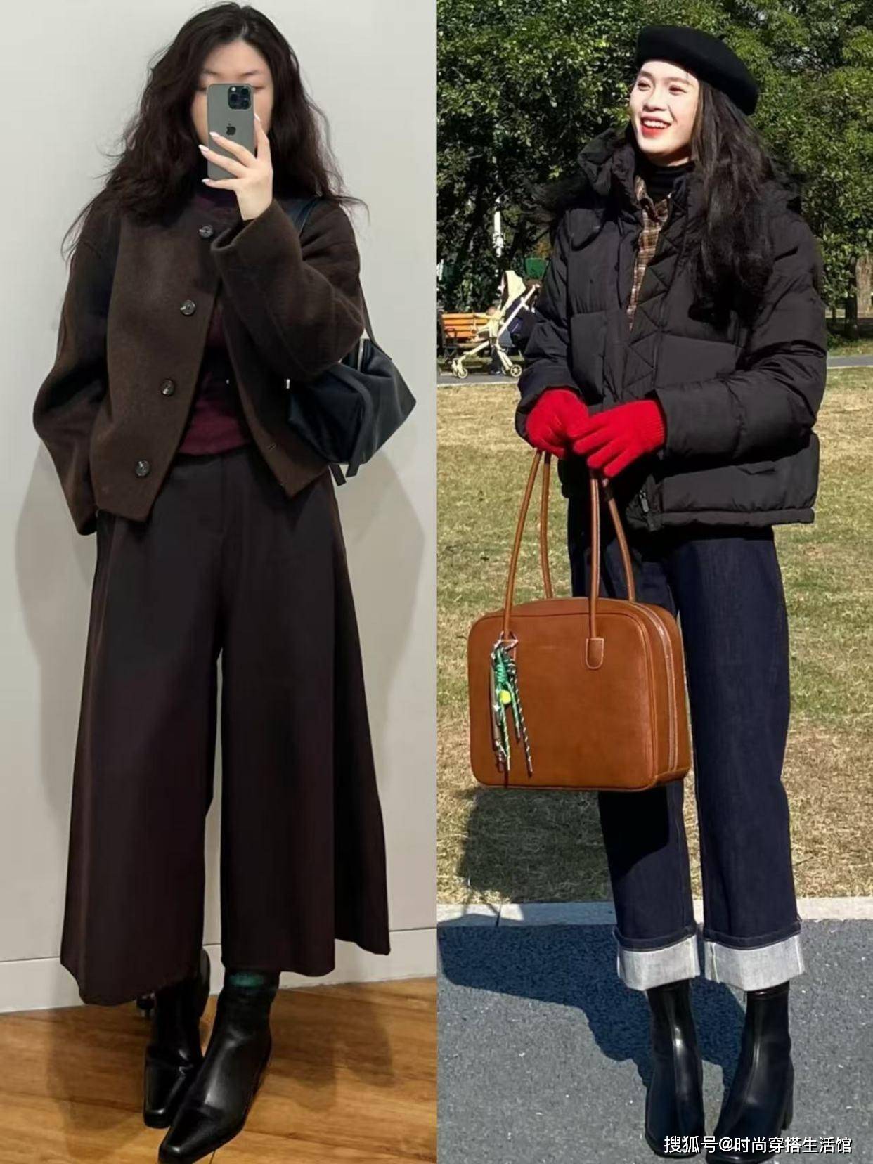 原因⑴九分裤搭配短靴遮住脚踝,轻松保暖