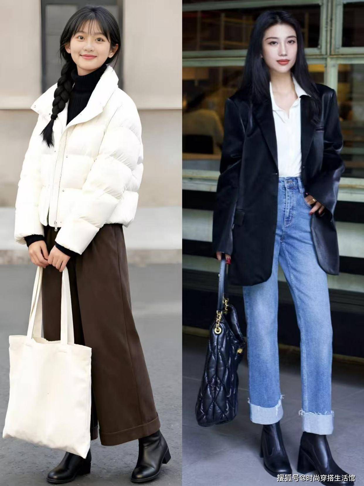 对于冬天的穿搭一直主张的就是保暖和时髦,所以对于冬天来说选择露脚踝的搭配方式尽量少用,毕竟露出脚踝的话保暖性不足,同时还很容易暴露腿部缺点。