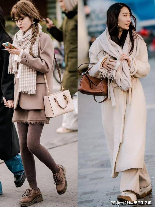 最后冬天的氛围相对单调,我们在穿衣打扮的时候可以增加细节的点缀,一方面可以凸显造型的氛围感,另外一方面还可以转移大家的视线。比如像是围巾、帽子、项链、耳环、包包、腰带等等,这些配饰不仅可以烘托出氛围感,同时还能塑造出层次感,此外我们要避免配饰过多点缀,全身保持2-3种配饰即可。