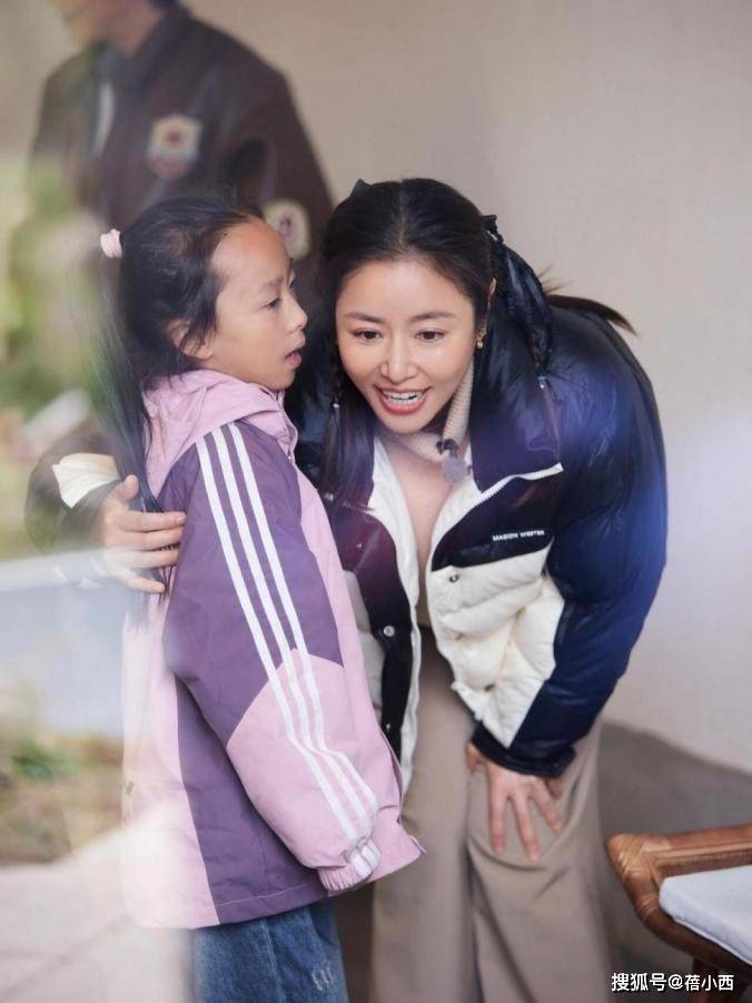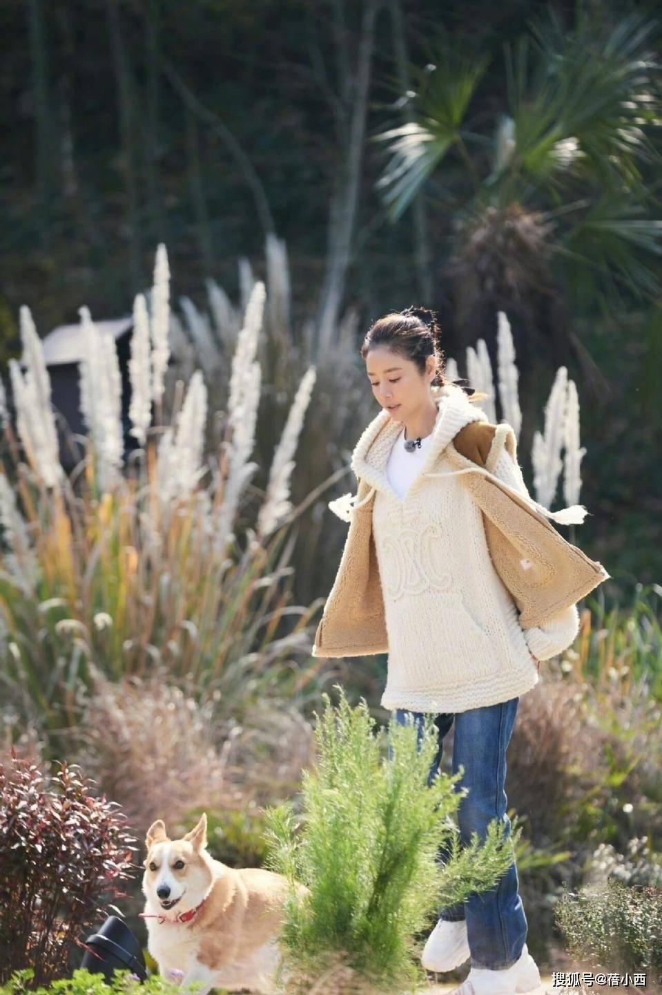 为了达到更好的保暖效果,林心如在卫衣上还搭了一件马甲,它的里子面料是绒,摸上去毛绒绒的,十分舒适。腿上的蓝色牛仔裤与卫衣是老搭档了,哪个季节都会有它的身影。