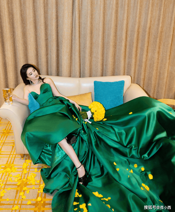 身上穿的这件绿色长裙可不太好驾驭,关键点在于裙长上。虽然生活中基本不穿这种裙子出门,但看女明星走红毯时,都替各位女神捏了把汗,因为不仅要注意仪态,还要时刻关注裙摆的摆放位置。