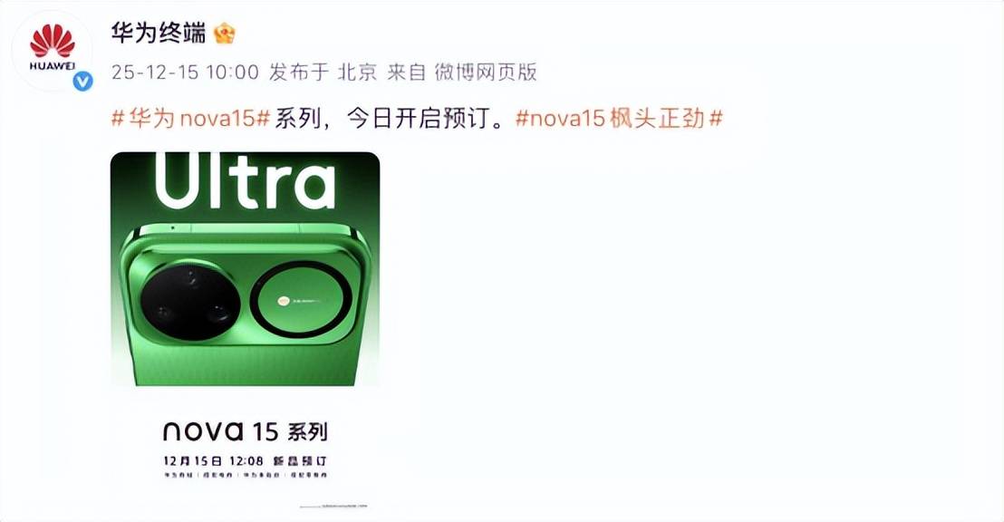 目前,nova 15系列已正式开启预订。从产品四色海报来看,除了主打的“带感绿”,新机还将提供紫色、黑色、白色共四款配色,满足不同用户的个性化需求。