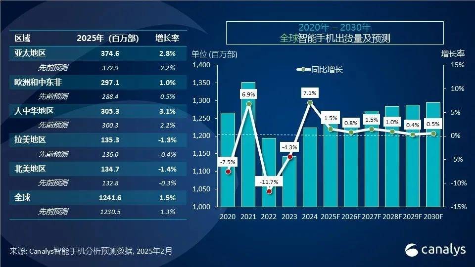联发科的跨界,本质上是对市场格局变化的精准应对。在手机领域,尽管其全球份额已达 34%,但行业增长已然乏力。数据显示,2024年全球手机市场6.8%-7.1%的增长仅为恢复性增长,2025年增速将骤降至2.3%,增量空间极为有限,市场竞争陷入白热化。