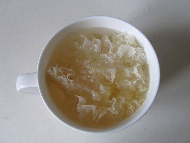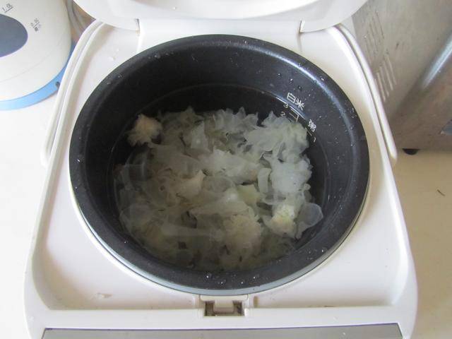 制作过程: 1. 提前将银耳用冷水泡软,再手撕成小片;