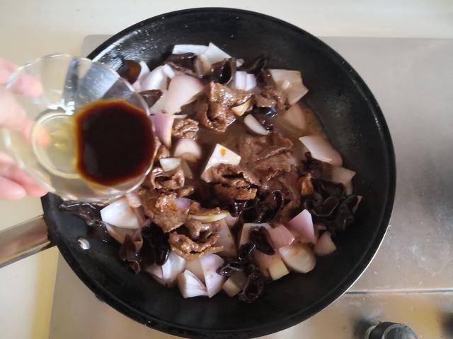 第三种:牛肉: 牛肉被誉为”肉中之王“,营养价值极高,高蛋白、低脂肪,富含优质蛋白质、铁质, 有利于人体补充营养增强抵抗力,还能驱寒暖身,特别适合气血不足的人食用。将它搭配上高铁的黑木耳和鲜香的洋葱一起炒,鲜美营养又开胃下饭,还能驱寒暖身,提升抵抗力,气血足了,也不惧寒冷。